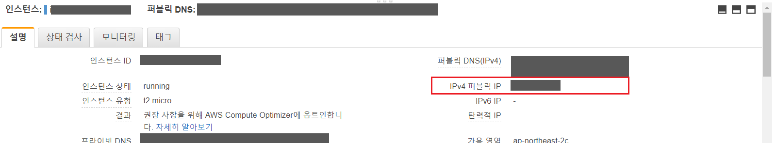 IPv4 퍼블릭 IP주소를 복사해줍니다!