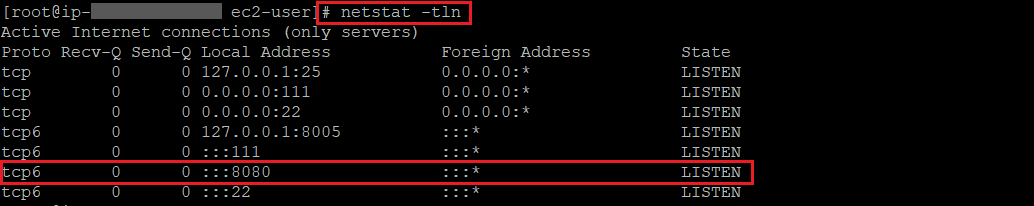 8080포트가 열려있는지 확인