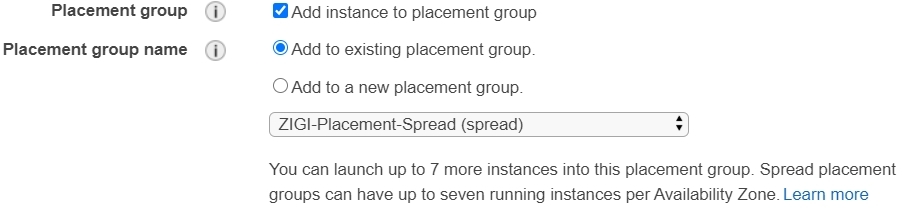 단, Spread 배치 전략으로 설정 시 아ㅐ에 해당 배치 그룹에 최대 7개의 인스턴스를 Launch up 할 수 있다고 안내가 뜨는 것을 확인 가능.