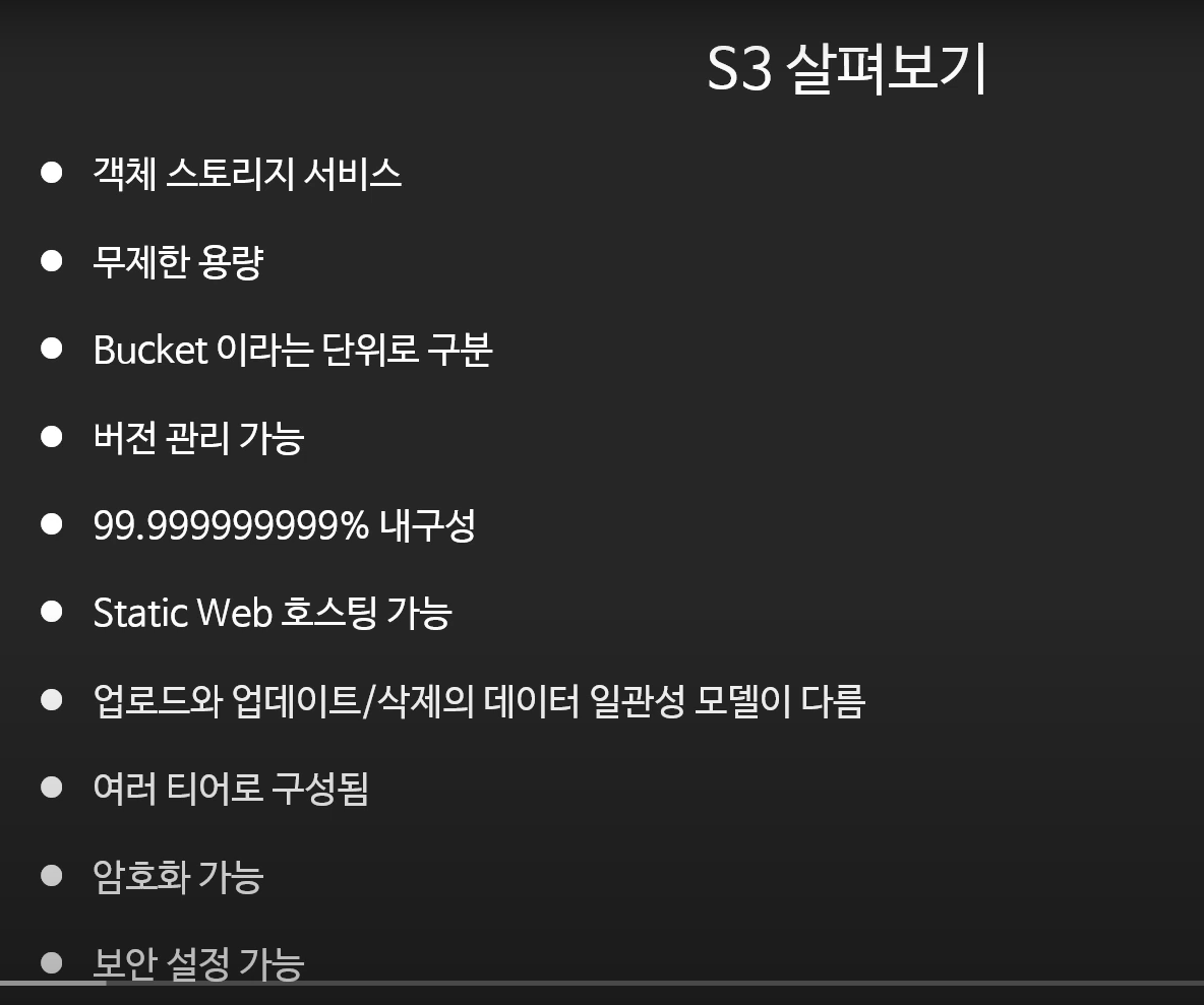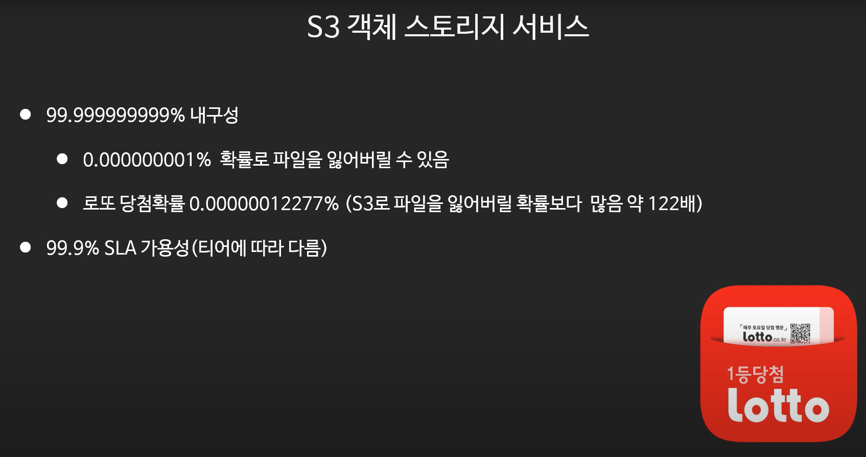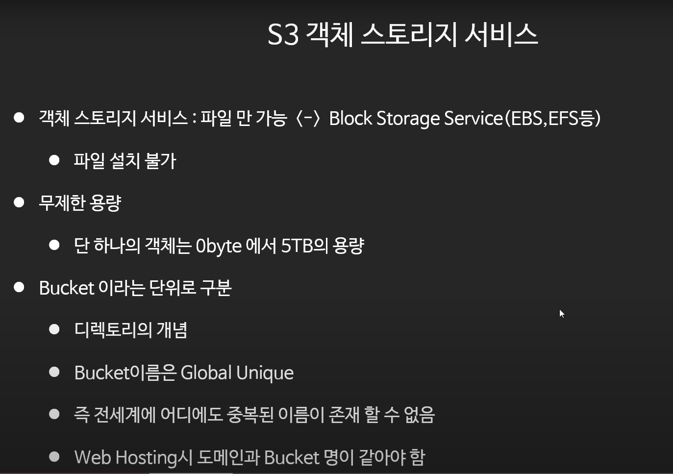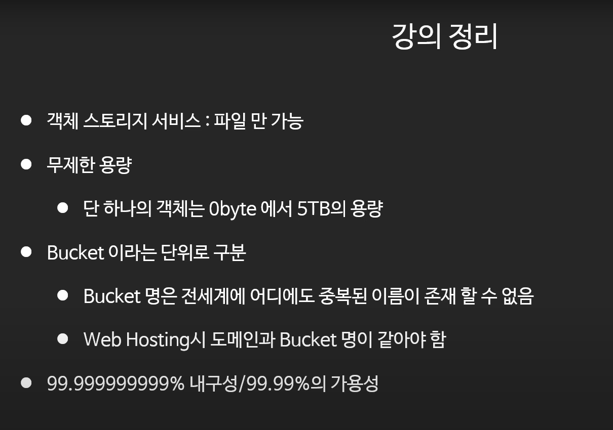 ## S3 객체 스토리지 서비스 (파일만 가능 <---> 블록 스토리지 서비스)