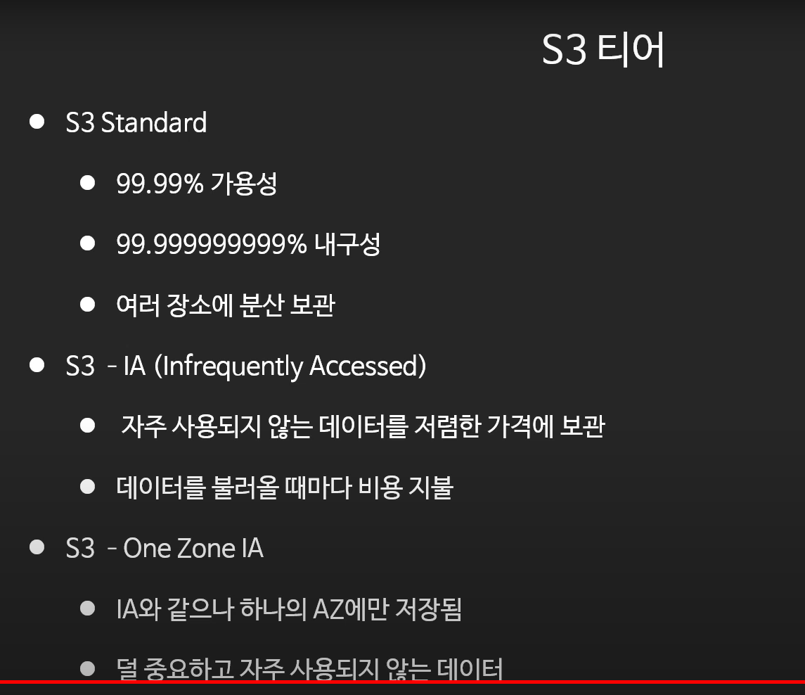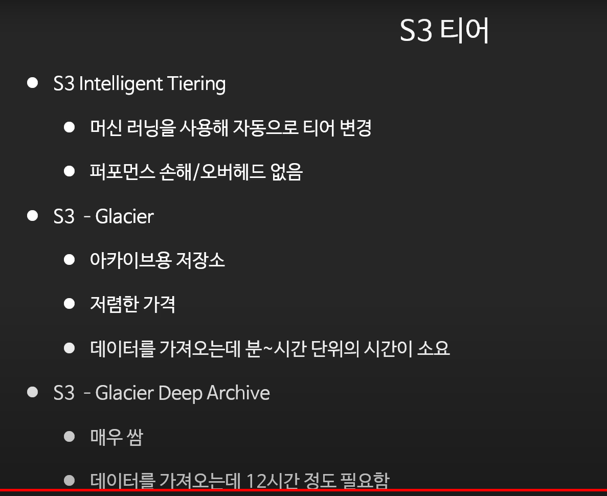 - S3 Intelligent Tiering : 머신러닝을 사용해 자동으로 티어 변경