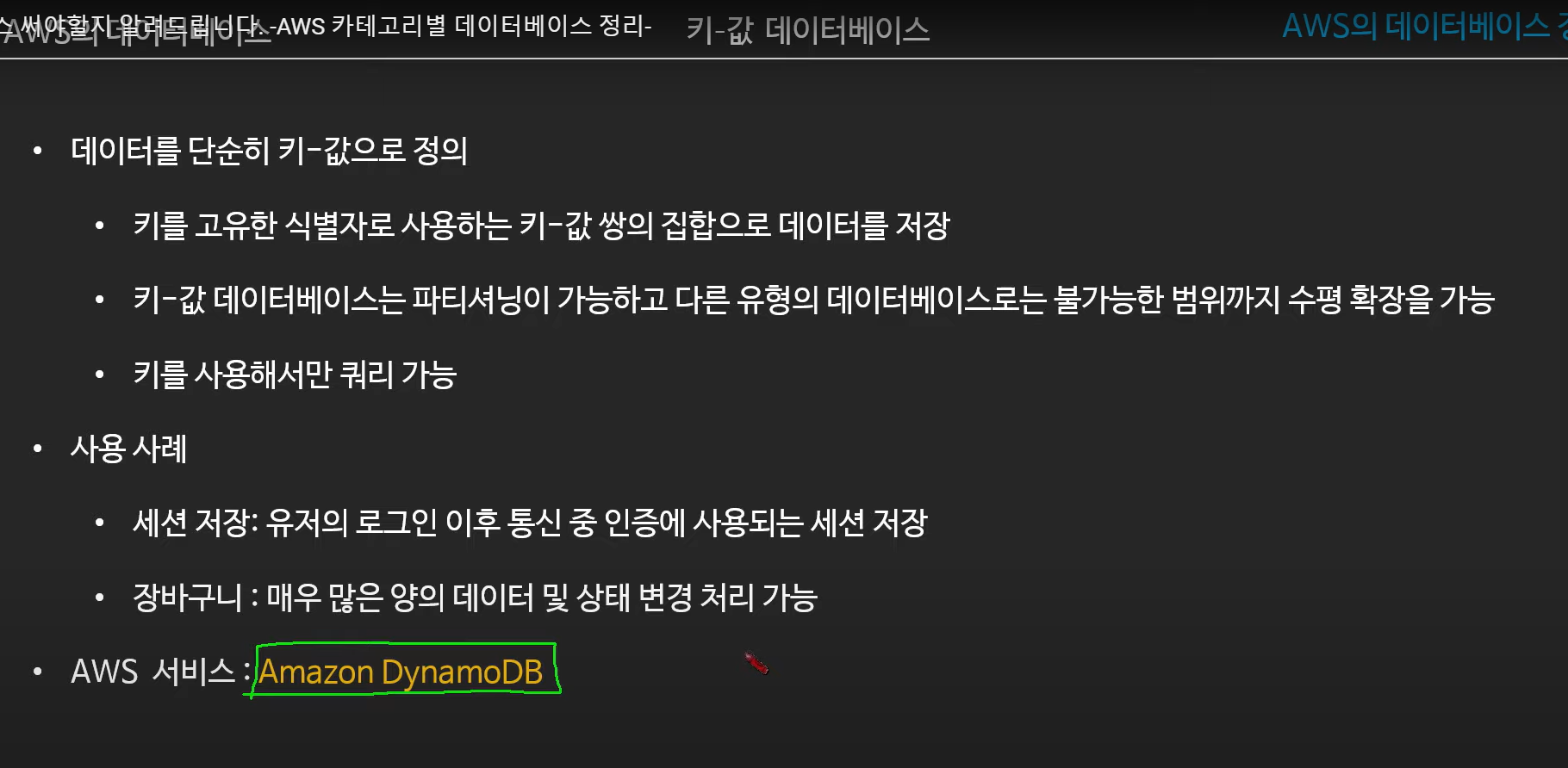 : DynamoDB 의 부족한 검색 기능 (키 로만 검색) 을 보완할 수 있음
