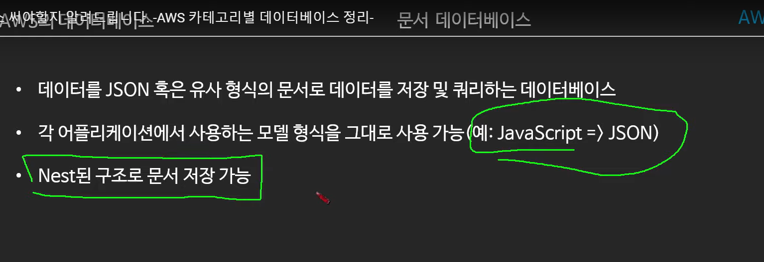 - 문서 데이터베이스 (DocumentDB == MongoDB)