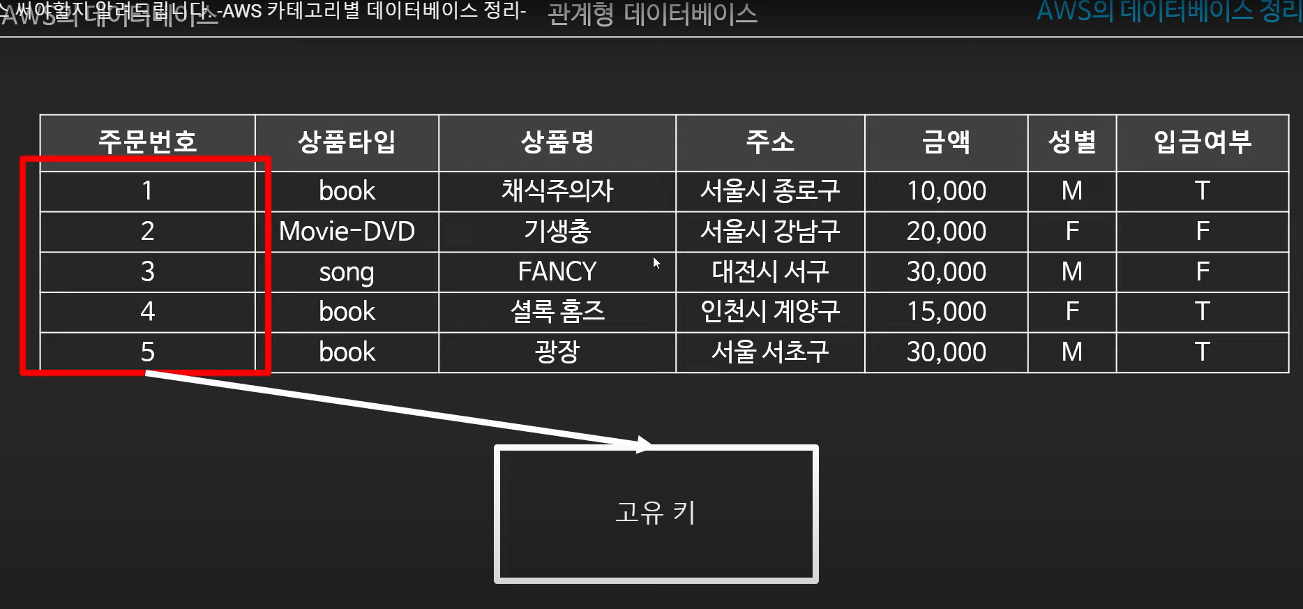 - 관계형 데이터베이스의 2종류