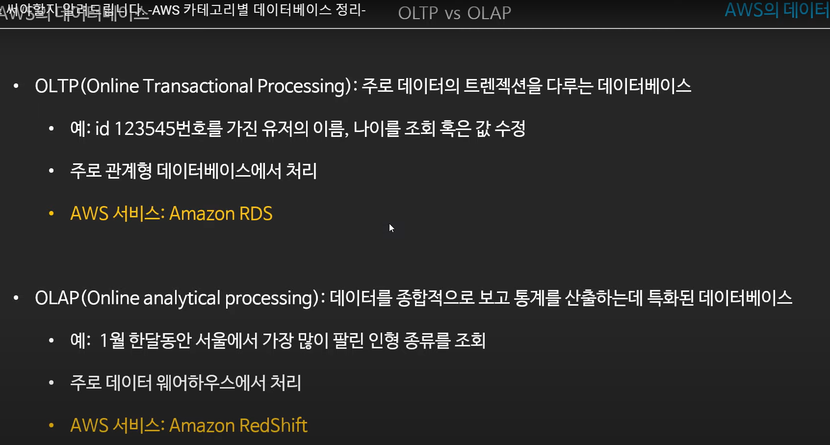 - OLTP (행을 기반으로 움직임)