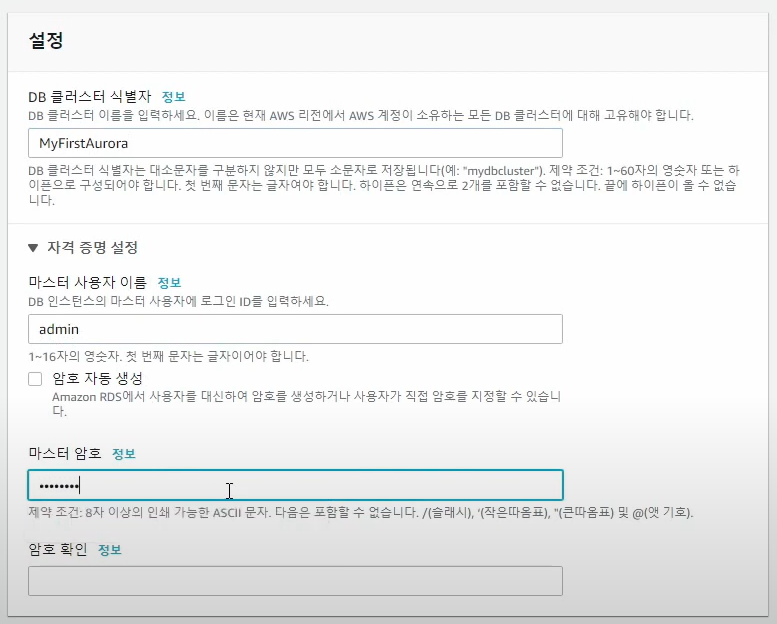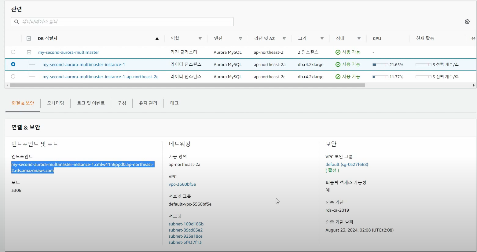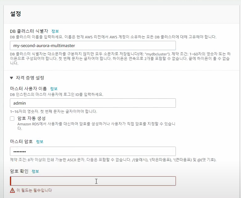 ## Aurora 구성 실습 (다중마스터 - Backtrack 지원 안함)