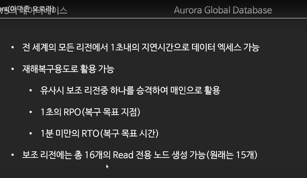 - 읽기 복제본 지원 (단, 다른 리전에만 생성 가능)