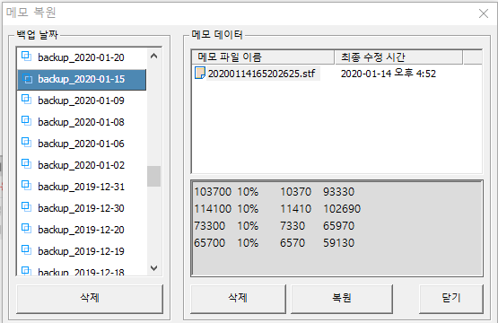 스크린샷 대로 복원기능을 누르면, 예전에 작성된 메모를 볼수 잇음에 다시 복원해 놓으면 된다.
