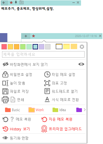 메모 뿐만 아니라, 알림설정도 있고 뭣보다 다양한 기능(?)도 있음.