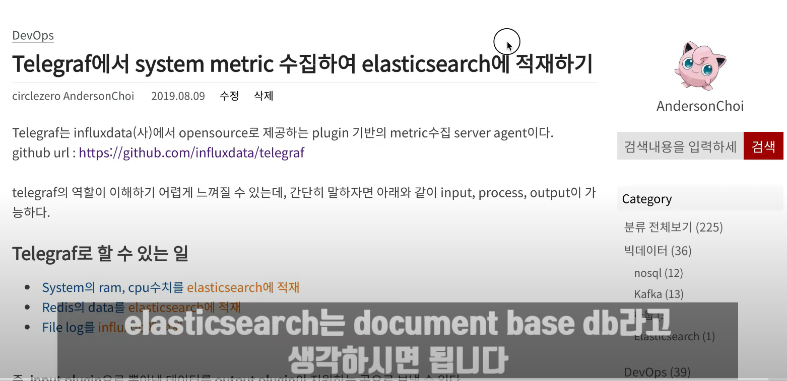 | [AWS] Telegraf에서 system metric 수집 & Elasticsearch에 적재하기 (0) | 2021.10.14 |