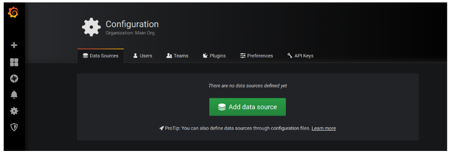 Grafana 설정을 해보자. 먼저 "측정 데이터가 저장된 데이터 소스를 설정해야 한다."