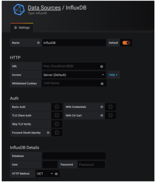 URL : InfluxDB 접근 URL이다. 같은 호스트에 설치돼 있으니 http://localhost:8086으로 설정한다.