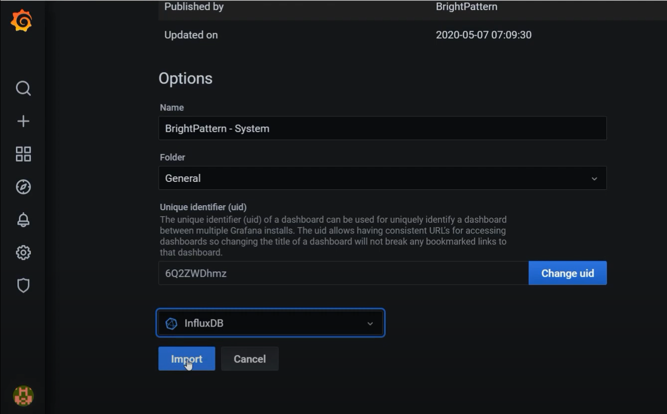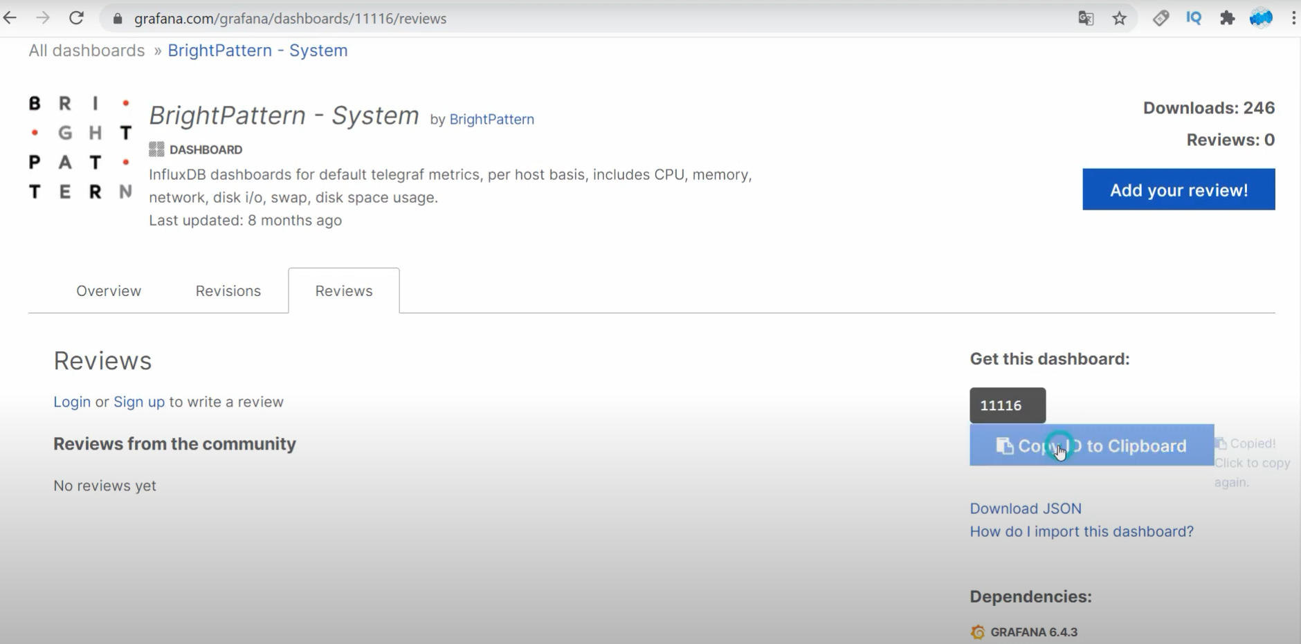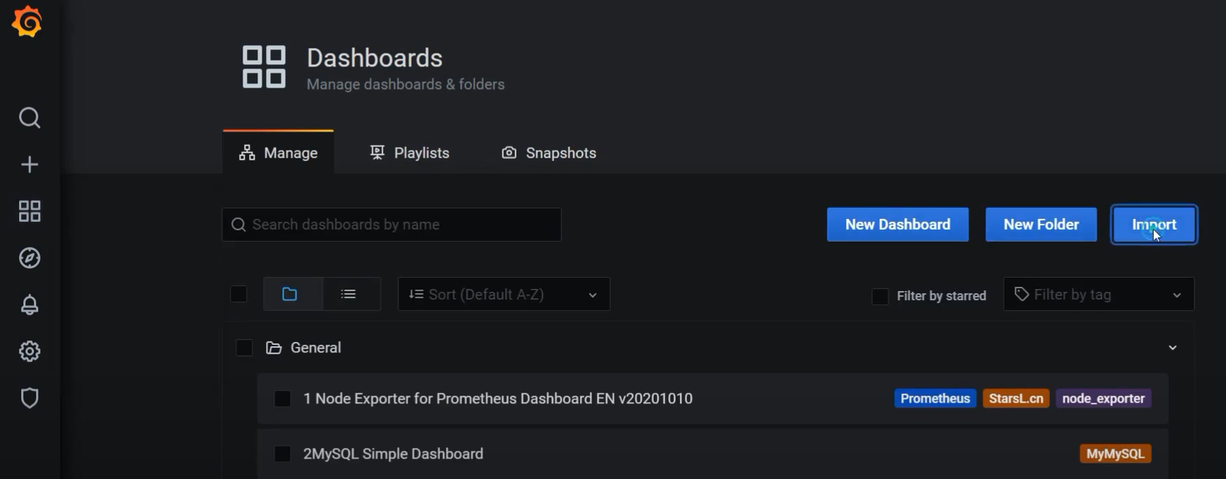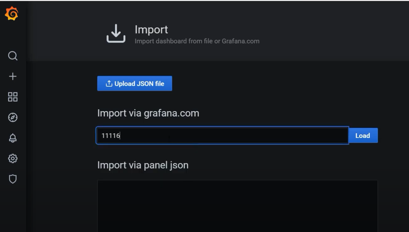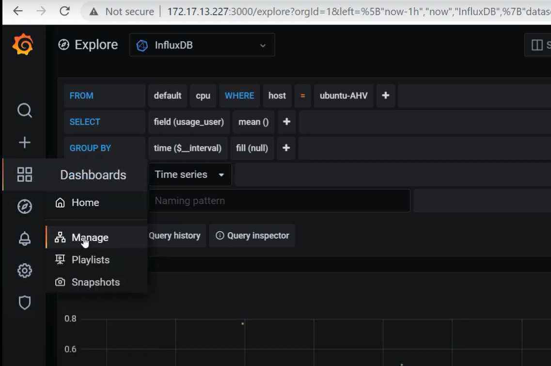- Manage 클릭 --> Import 클릭 --> 11116 입력 --> InfluxDB 입력 -> Import 클릭