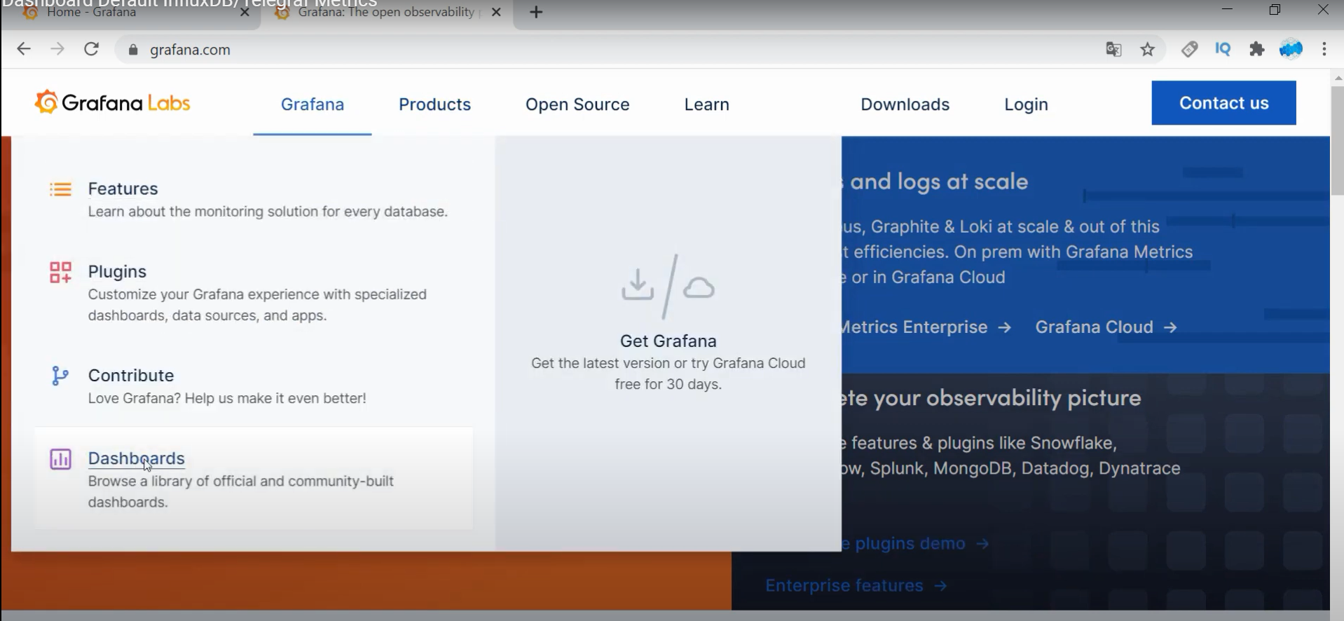 ## 그라파나 홈페이지 이동