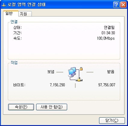 즉, 사서샘은 1시간 34분 30초 동안 7메가바이트를 받았고, 97메가바이트를 받은 셈이니, 대략 114메가바이트를 주고 받은 셈이네요. 파일도 다운받지 않고, 단순히 웹서핑만 했는데도 핸드폰 사용량과 비교하면 데이터 전송량이 꽤 많습니다.