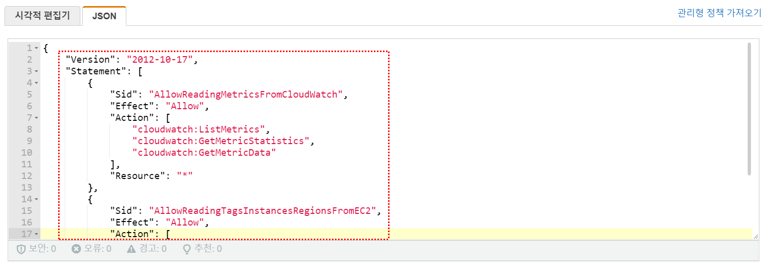 - IAM -> 정책 -> 새 정책을 생성합니다.