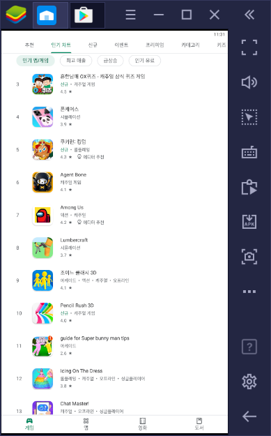 현재 앱플레이어는 블루스택, 녹스 등 여러 종류가 나와 있습니다.