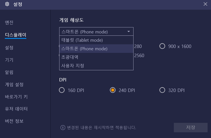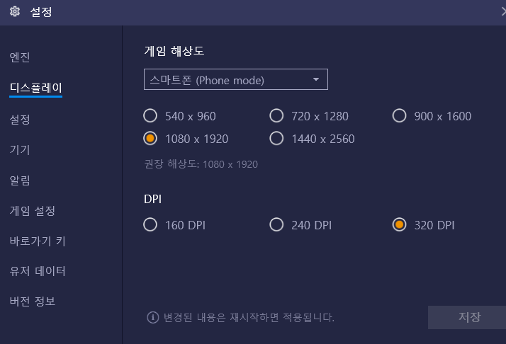 디스플레이설정 블루스택4