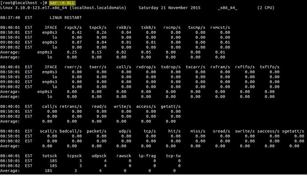 # sar -n {키워드} 또는 ALL 명령어를 사용하는데,
