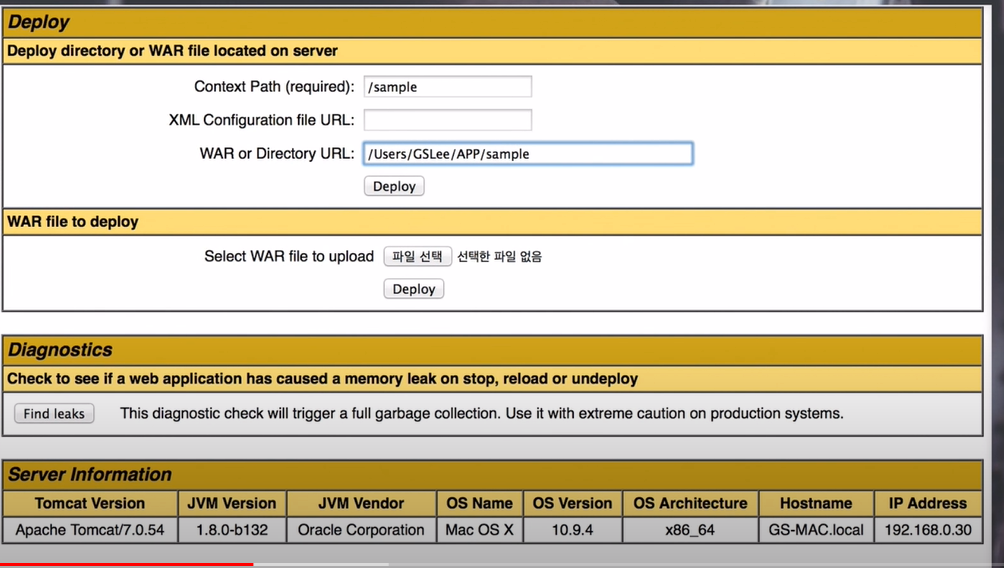 - WAR or Directory URL (해당서버내 APP 파일 위치 경로)