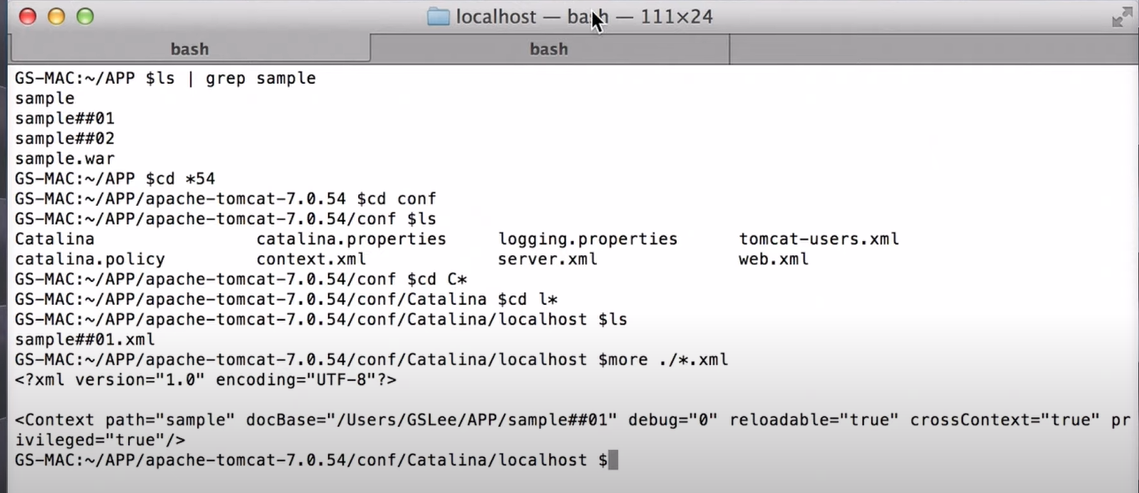 - /opt/tomcat/conf/Catalina/localhost/sample##01.xml 생성