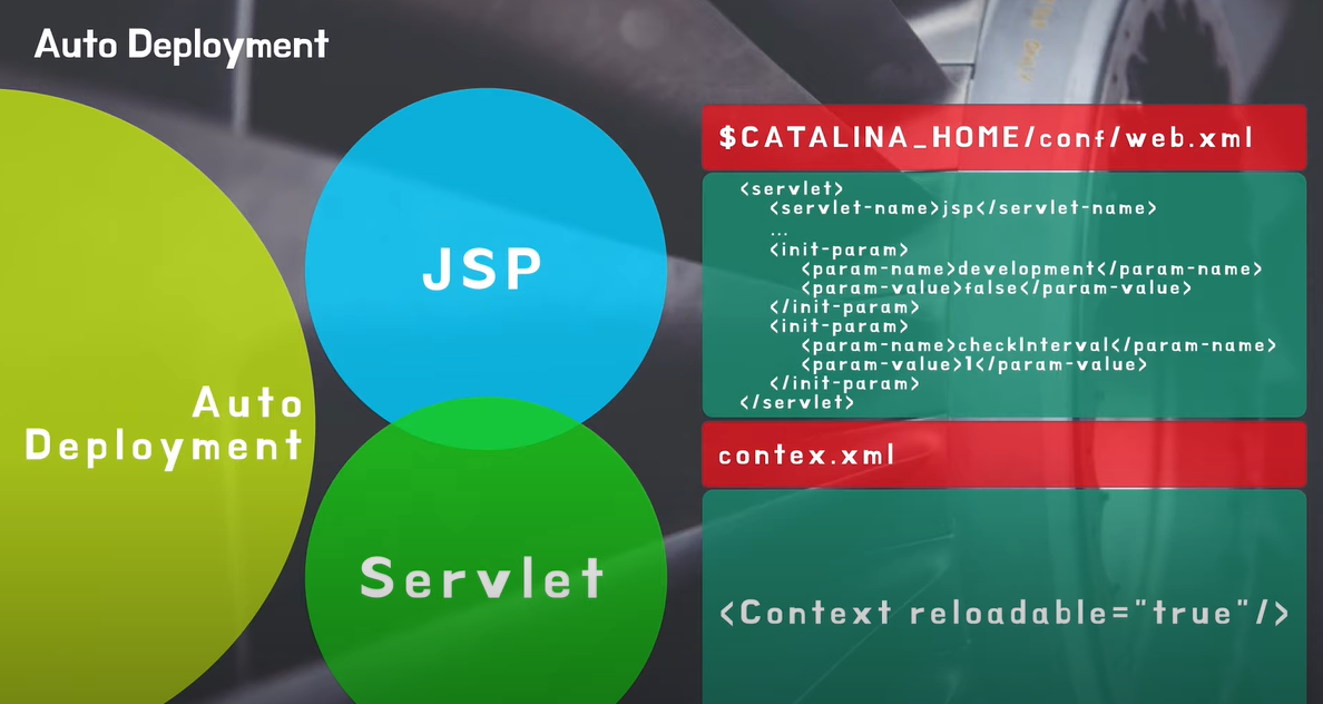 - JSP or Servlet 변경시 자동(동적) 배포 기능
