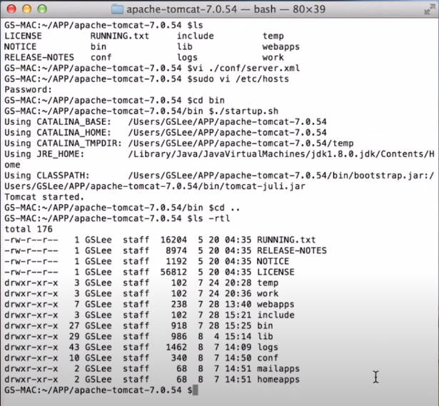 - 톰캣 재시작후, homeapps, mailapps 폴더 자동 생성