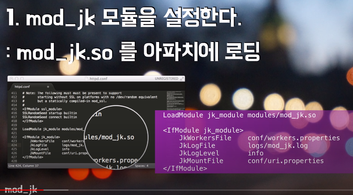 - mod_jk.so 파일을 모듈로 읽어들이겠다.