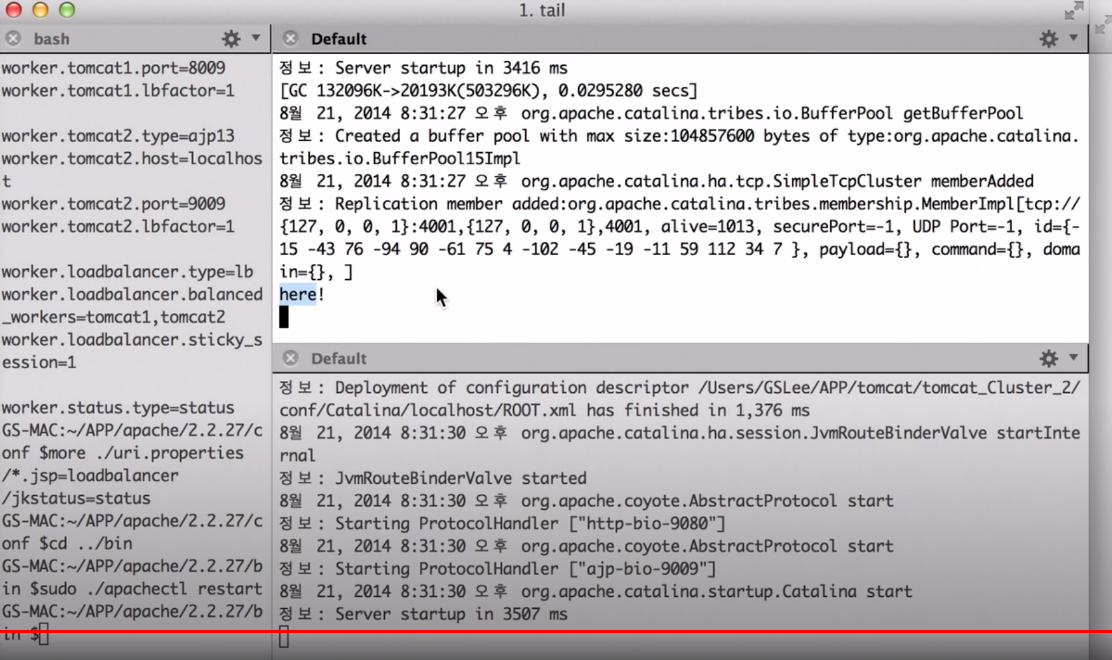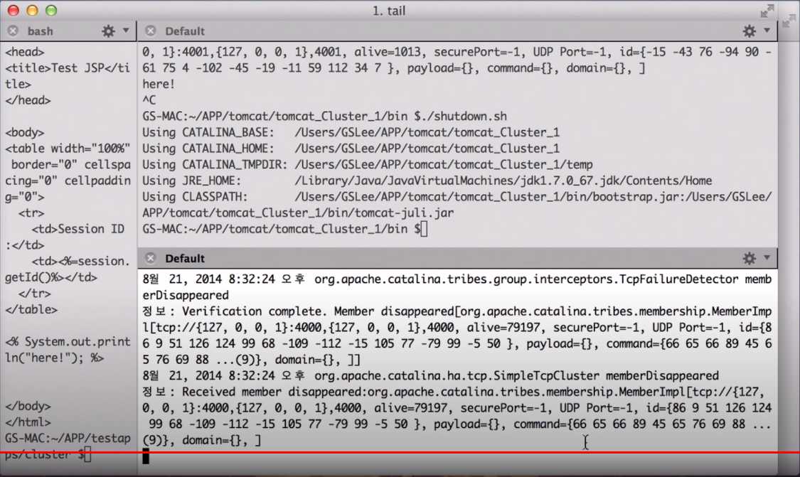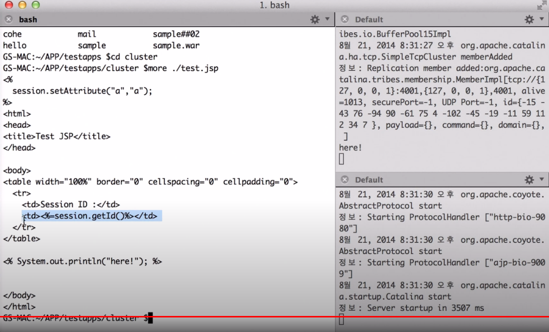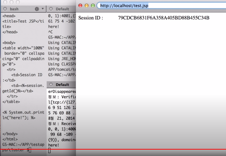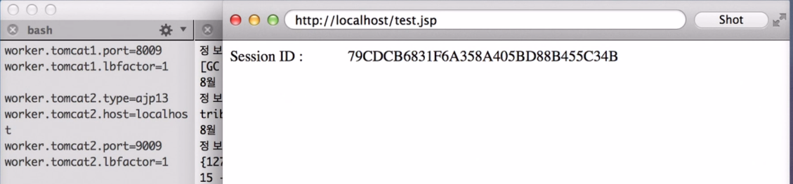 - 톰캣2번 서버로 이전 / 세션ID 동일 / here 로그 확인