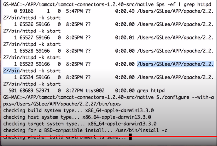 : 아파치 위치 확인 후, configure 로 컴파일 실행