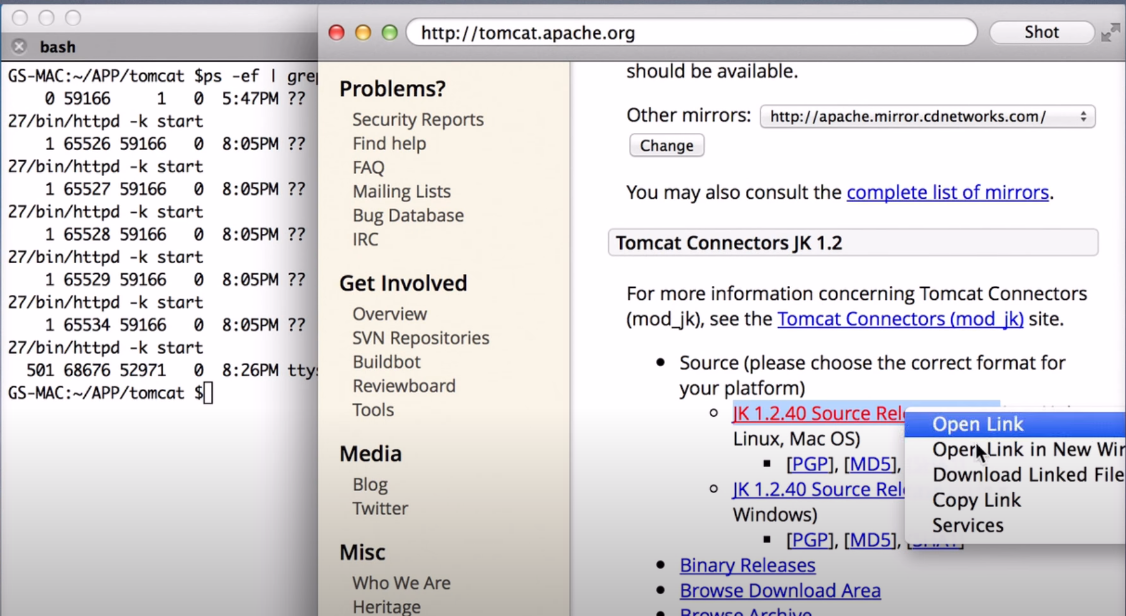 - 아파치와 톰캣과 대표적인 연동 모듈임