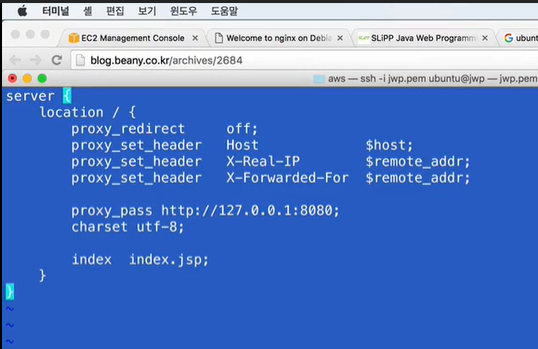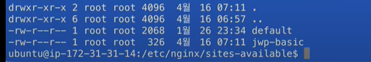- sudo ln -s ../sites-available/jwp-basic jwp-basic (심볼릭링크 재설정)