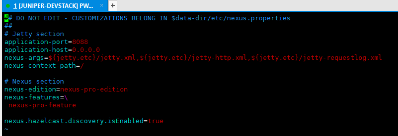 - sudo vi /opt/nexus/etc/nexus-default.properties