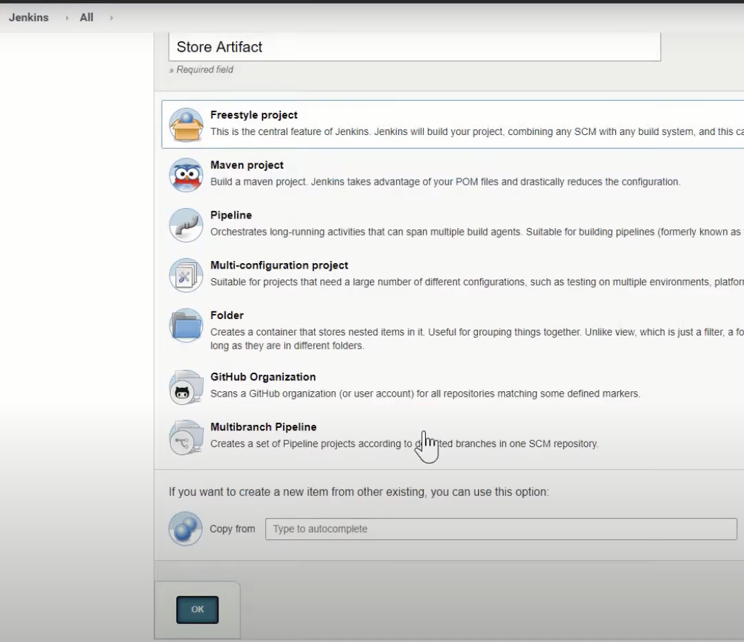 - Store Artifact 잡 생성 (Freestyle project 선택)
