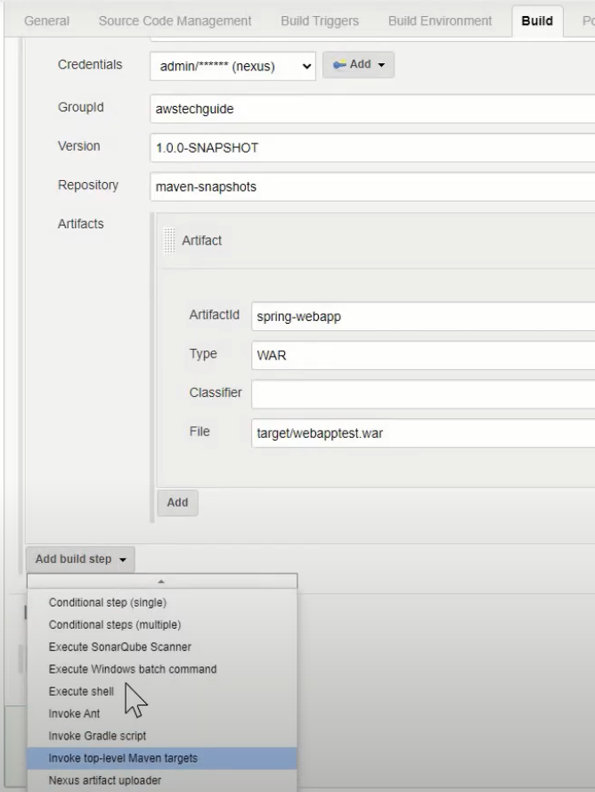 : Invoke top-level Maven targets 선택 후 -> 위로 올리기 (넥서스 작업 위로 올리기)