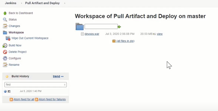 - 젠킨스 workspace 폴더에 devops.war 파일 확인후
