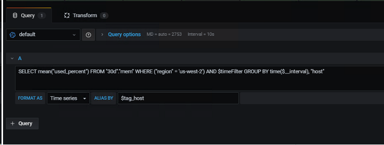 SELECT mean("used_percent") FROM "30d"."mem" WHERE ("region" = 'us-west-2') AND $timeFilter GROUP BY time($__interval), "host"