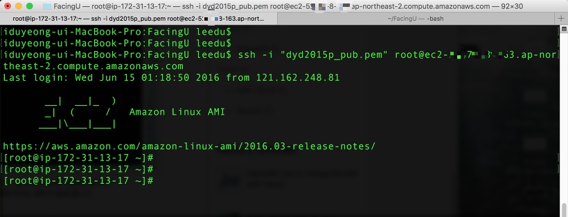 기존에 ec2-user로 접속할때 사용한 pem파일을 사용하여 root계정으로 접속해봅니다.