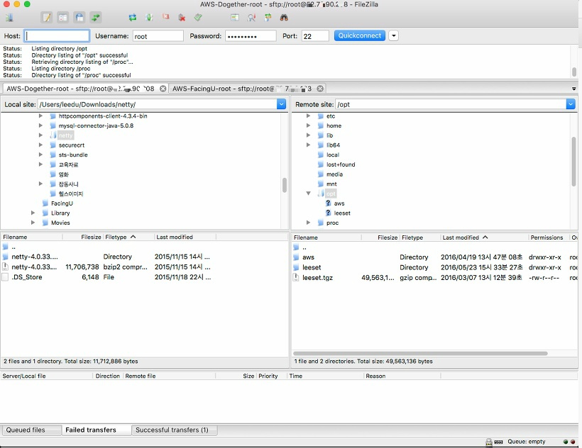 - 첫번째로, sftp를 연결하고 로컬에서 원격서버에 write(파일쓰기)를 하기 위해선 root계정으로 connect되야 합니다.