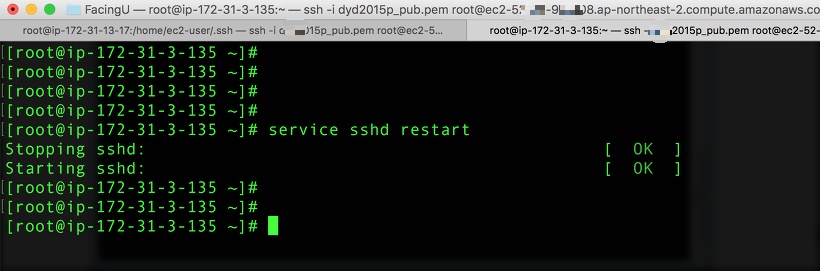 키를 변경후, 설정을 적용시키기위해 service 명령어를 사용하여 sshd을 재시작합니다.
