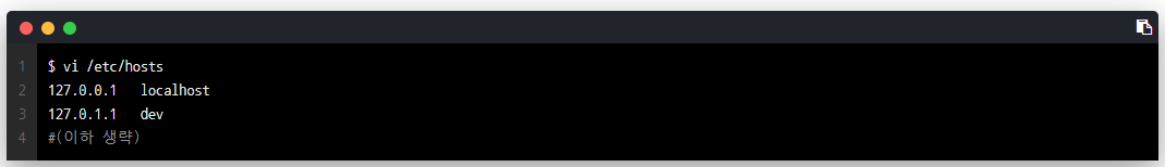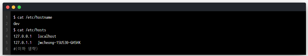 이 hostname은 terminal의 명령행에 계속 노출되므로 길면 거슬리기 마련이라, 필자는 보통 dev로 변경하는 편이다.