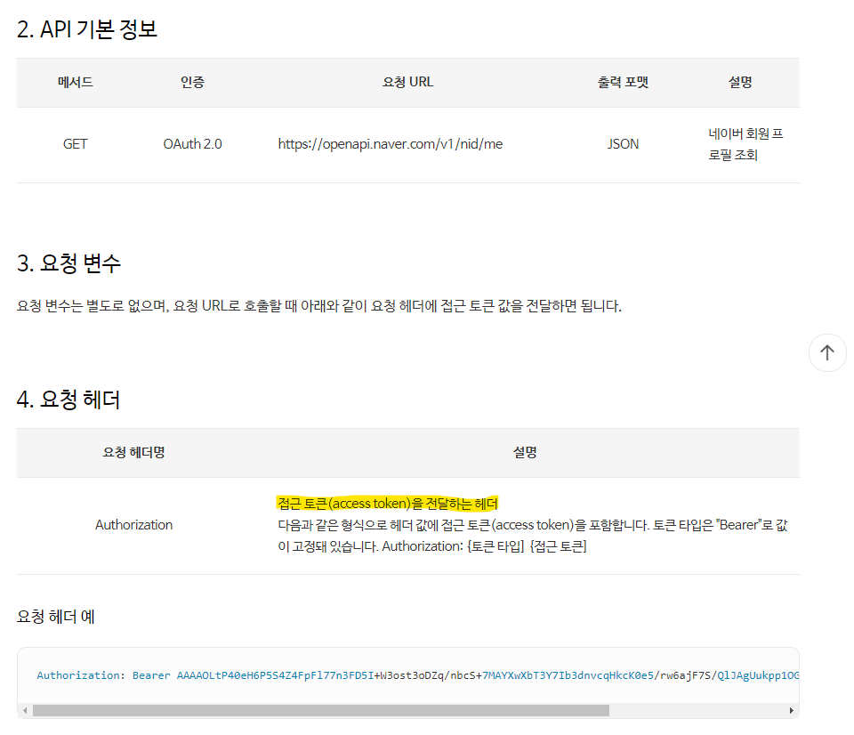 아마 네이버에 Access Token을 건네주면, 이 토큰을 확인하고 네이버가 정보를 건네주는 페이지가 있을 것이다.