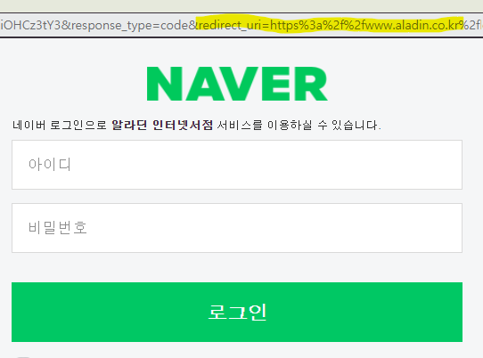 이런 이유로, 네이버 로그인을 클릭하고 이동된 URL을 유심히 살펴보면, redirect_uri값이 있음을 알 수 있다.