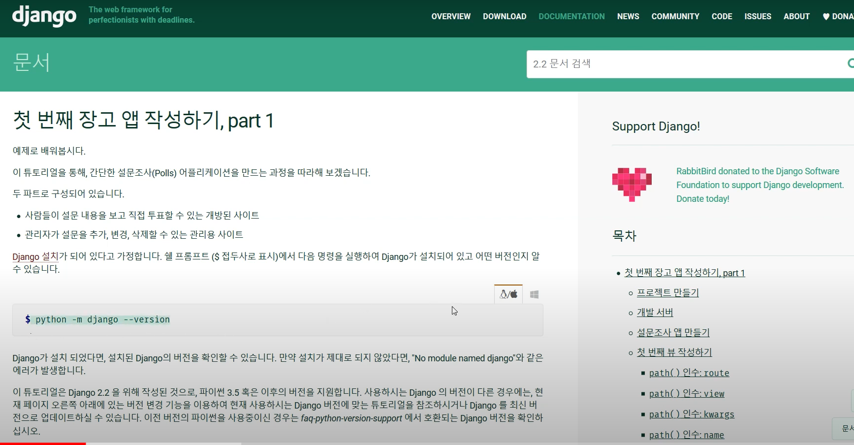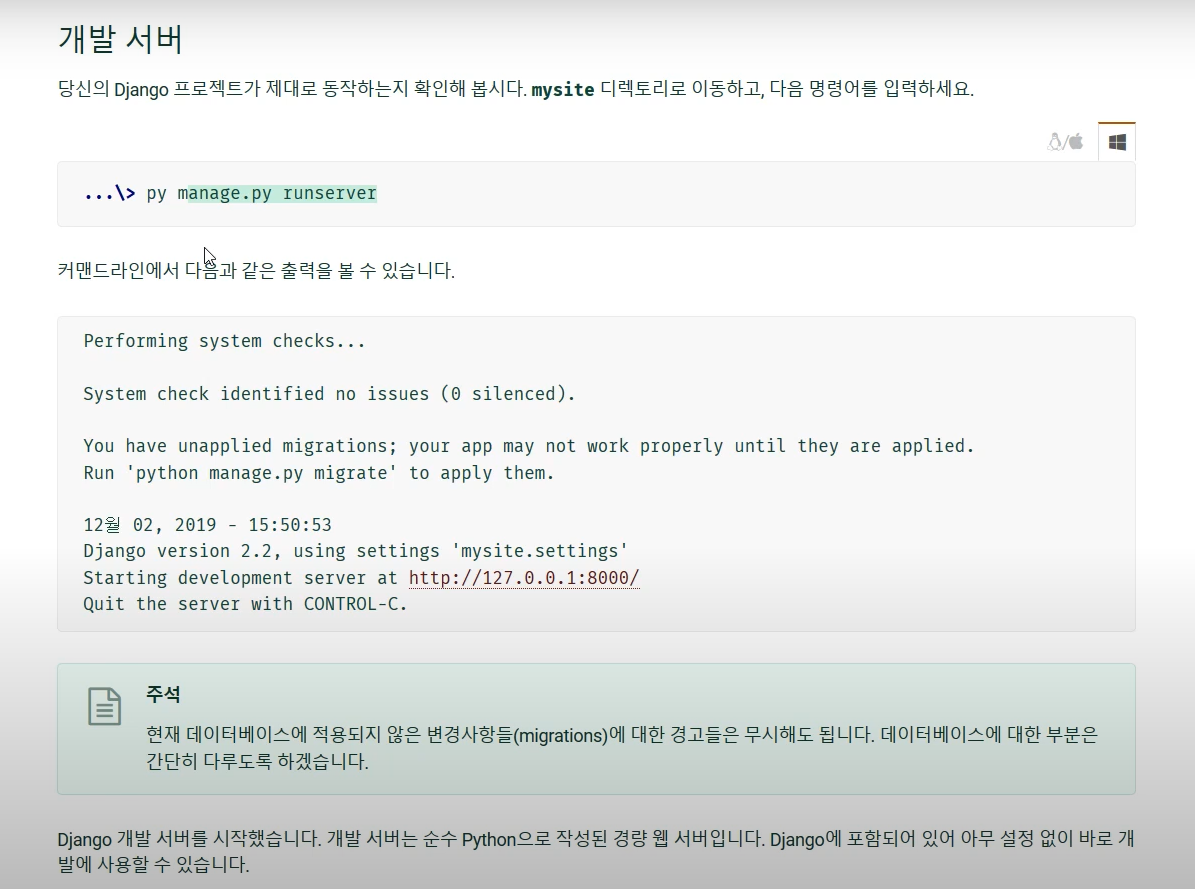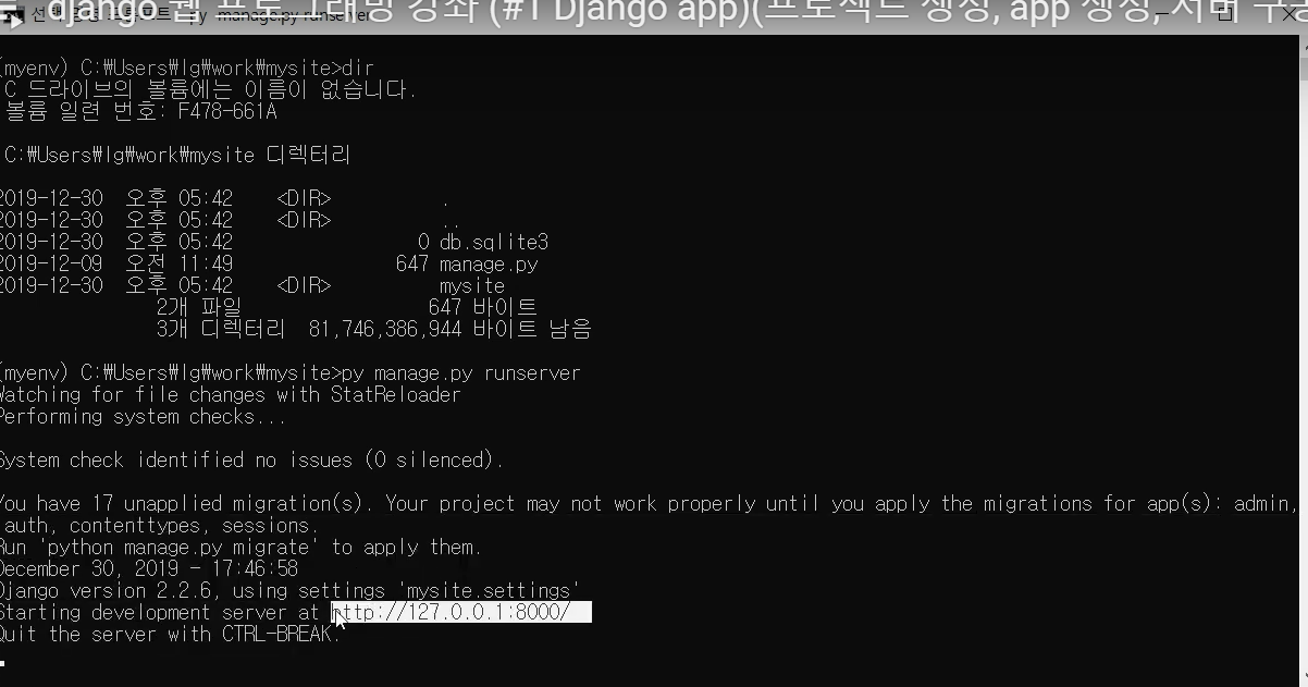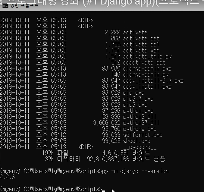 : py -m django --version (장고 라이브러리 설치 확인)