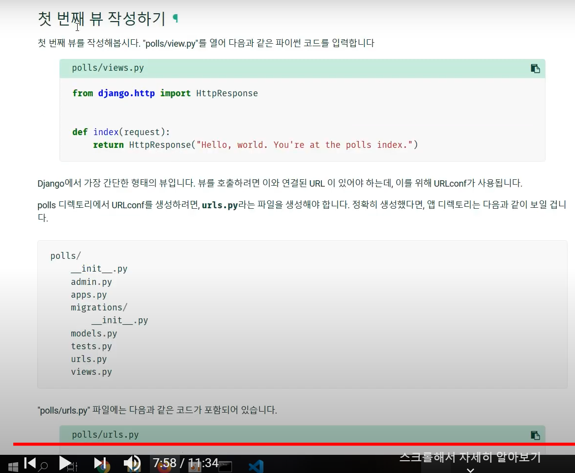 - polls/view.py 를 열어 코드 작성