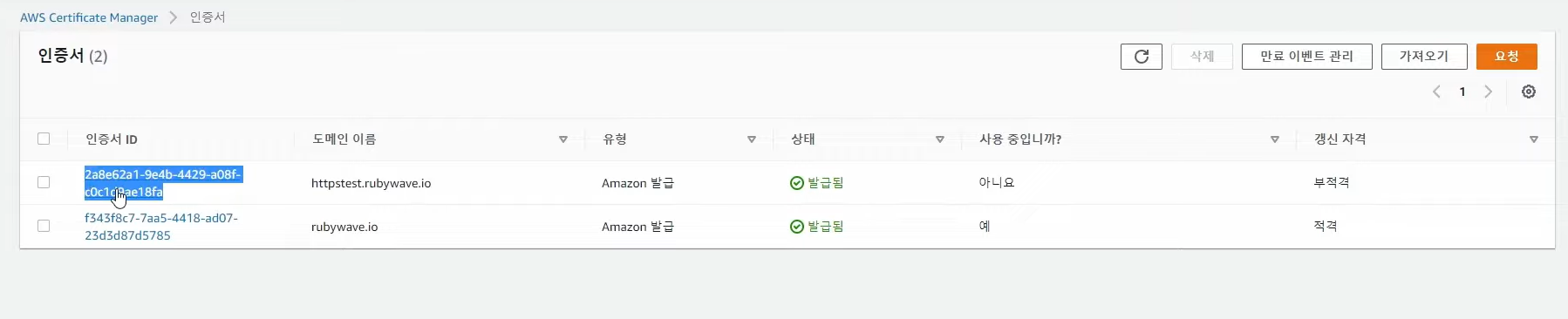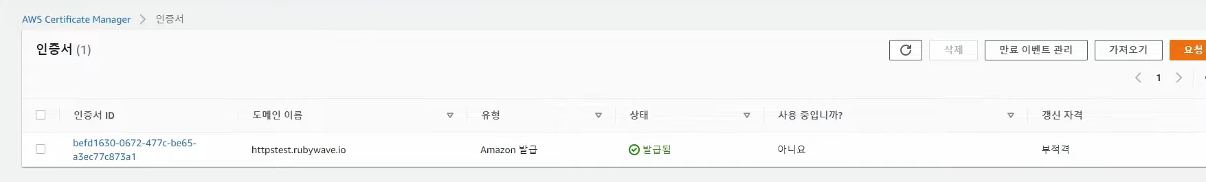 - ACM 서울 리전 이동
