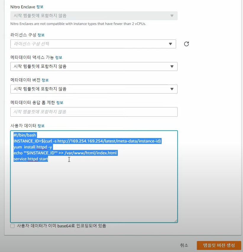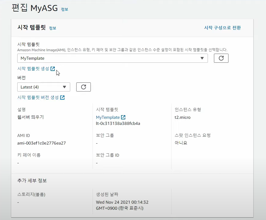 1) 시작템플릿 작성 --> 오토스케일링 그룹 생성 --> TG그룹 생성 --> ALB 생성