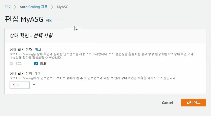 - [중요] ELB 도 상태체크에 포함 (ELB 와 ASG Health 체크가 연동됨)
