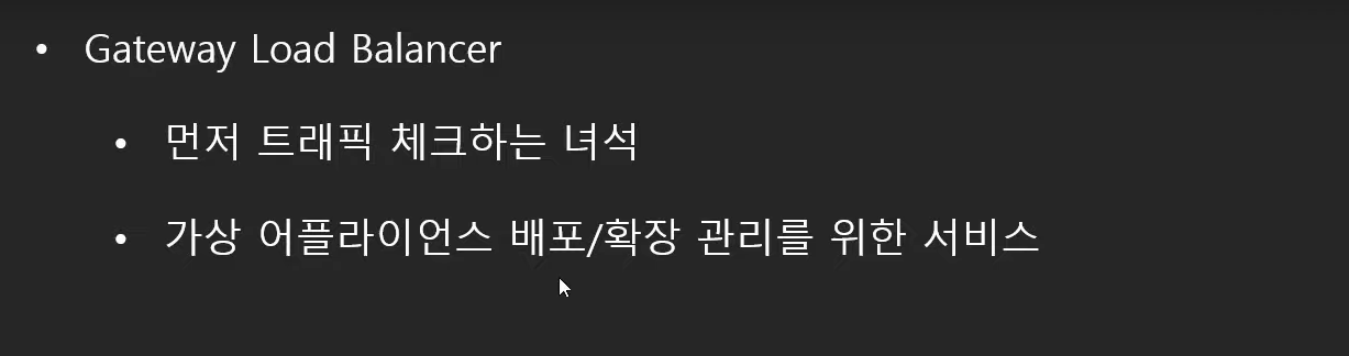 - Gateway Load Balancer : 먼저 트래픽 체크하는 녀석