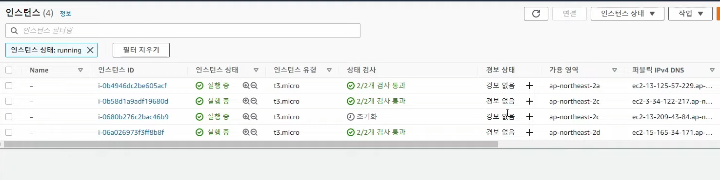 - 인스턴스 2대 --> 3대로 자동 생성 (맨위 서버는 삭제대기중)